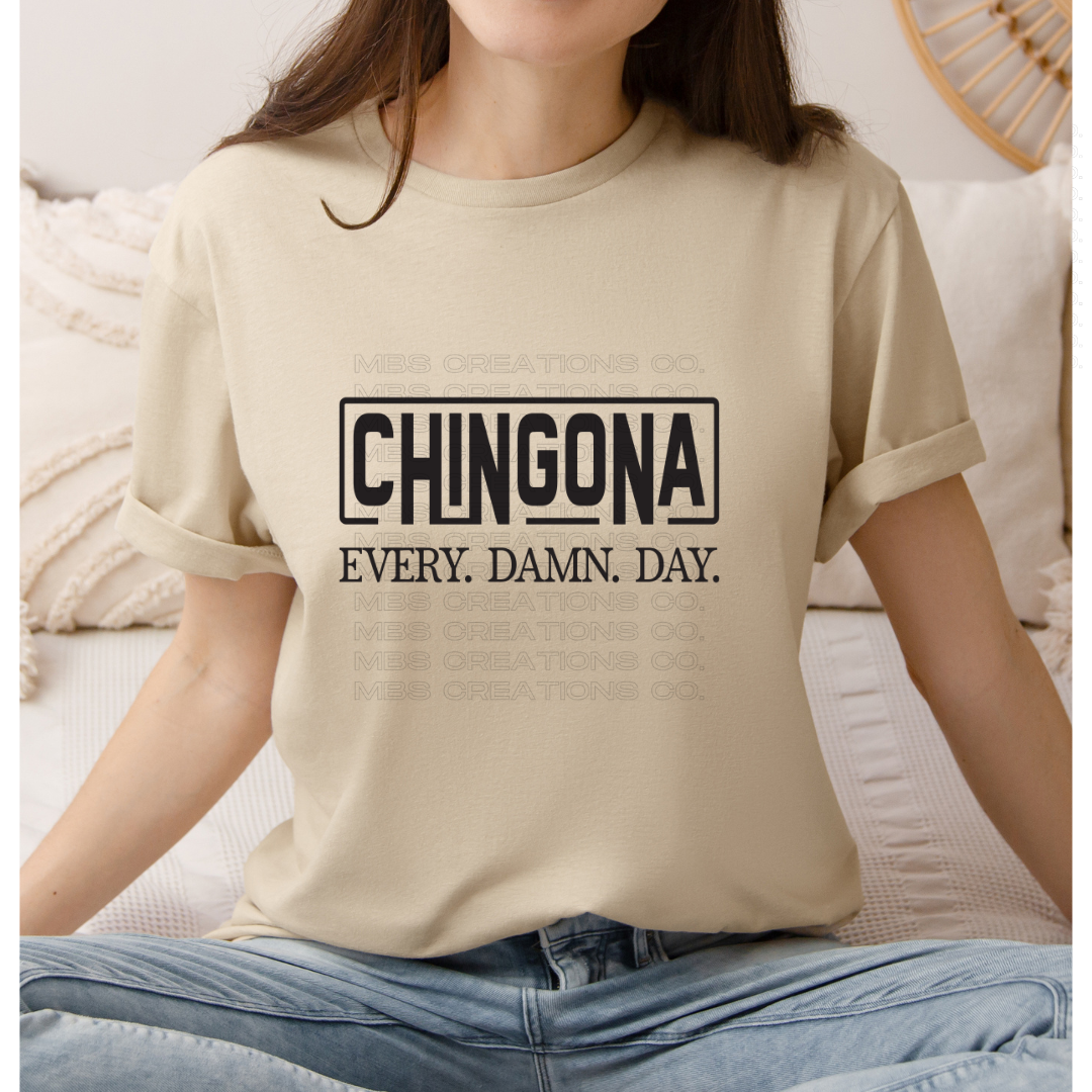 Get ready to be a fierce Latina with the Chingona shirt! Perfect for everyday wear, this shirt embraces your inner "chingona" (badass) in a playful and bold way. Show off your Latina pride and style with this unique shirt. Viva la chingona!