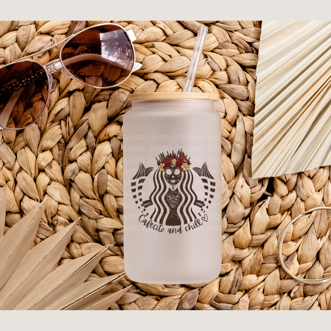 Introducing Cafecito and Chill, the perfect way to enjoy your favorite drink in style. This frosted glass cup adds a touch of sophistication to your coffee while keeping it cool and refreshing. Cheers to a chill and cozy break.