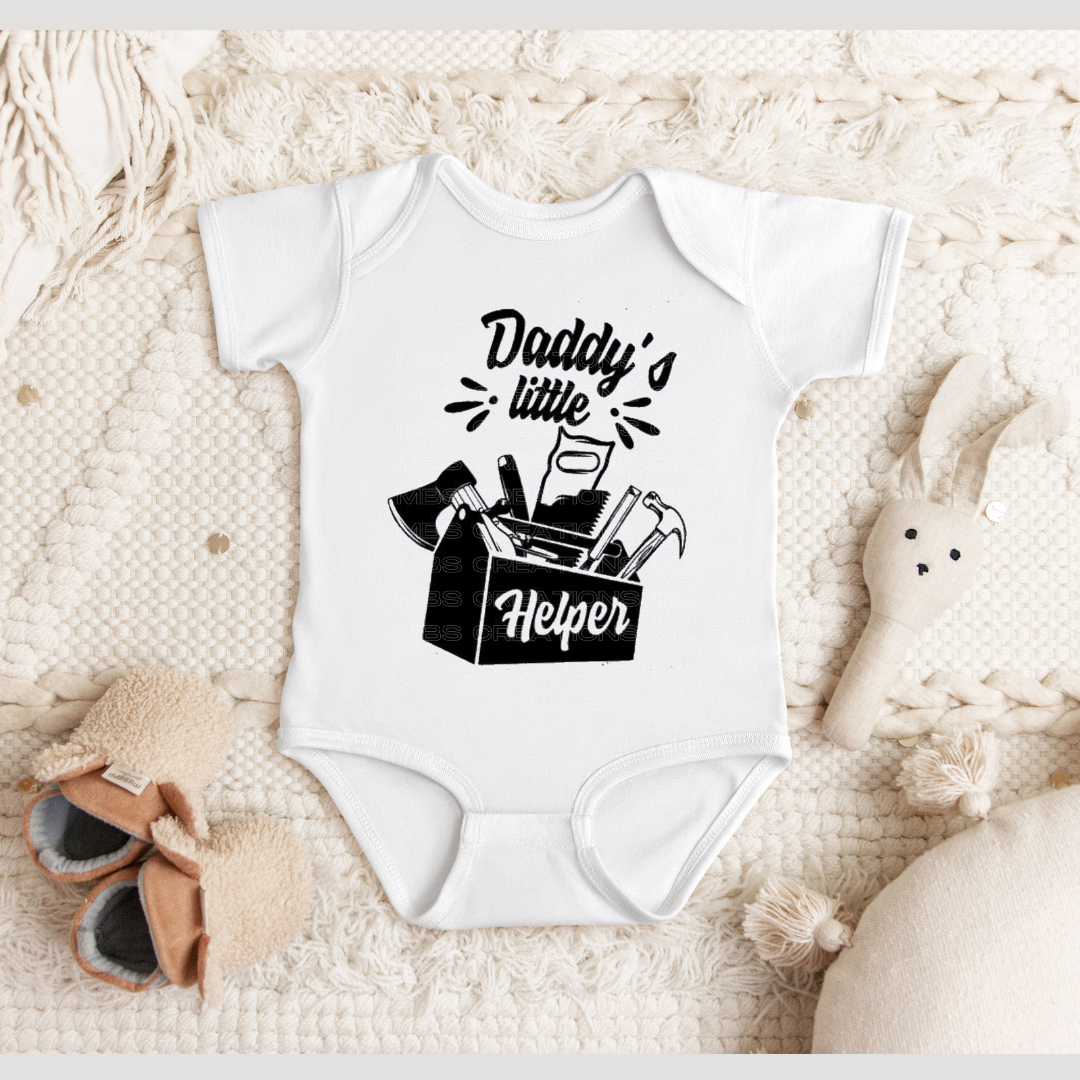 Daddy's little helper, now in onesie form! Show off your baby's support for their handyman father with this quirky and adorable outfit. Perfect to wear with dad. (CHECK OUT THE MATCHING DAD SHIRT)