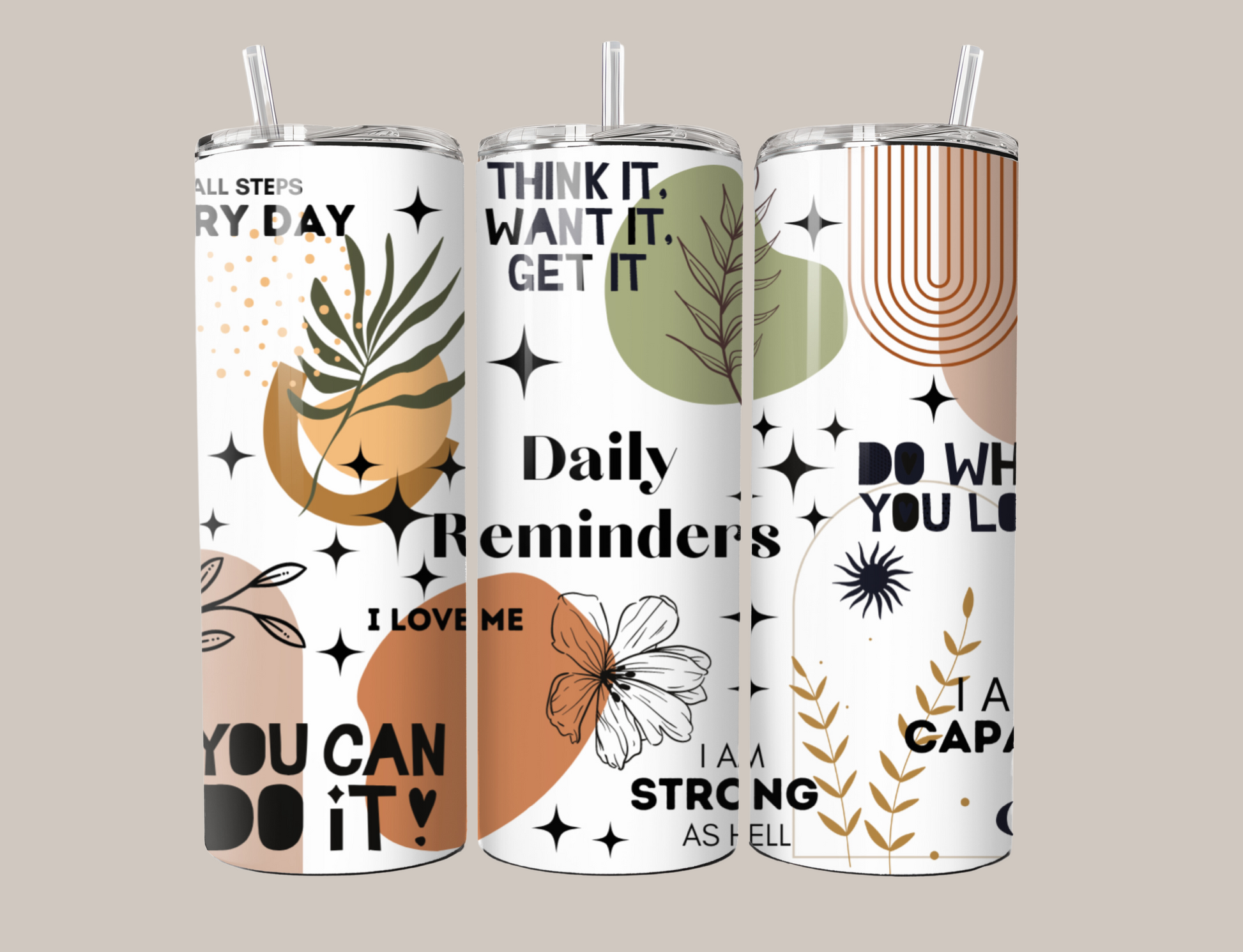 Stay on track and hydrated with our Daily Reminders Tumbler! This 20oz tumbler is perfect for both hot and cold beverages, keeping you refreshed all day long. With daily reminders printed on the tumbler, you'll never forget to stay motivated (or hydrated). Cheers to healthy habits!