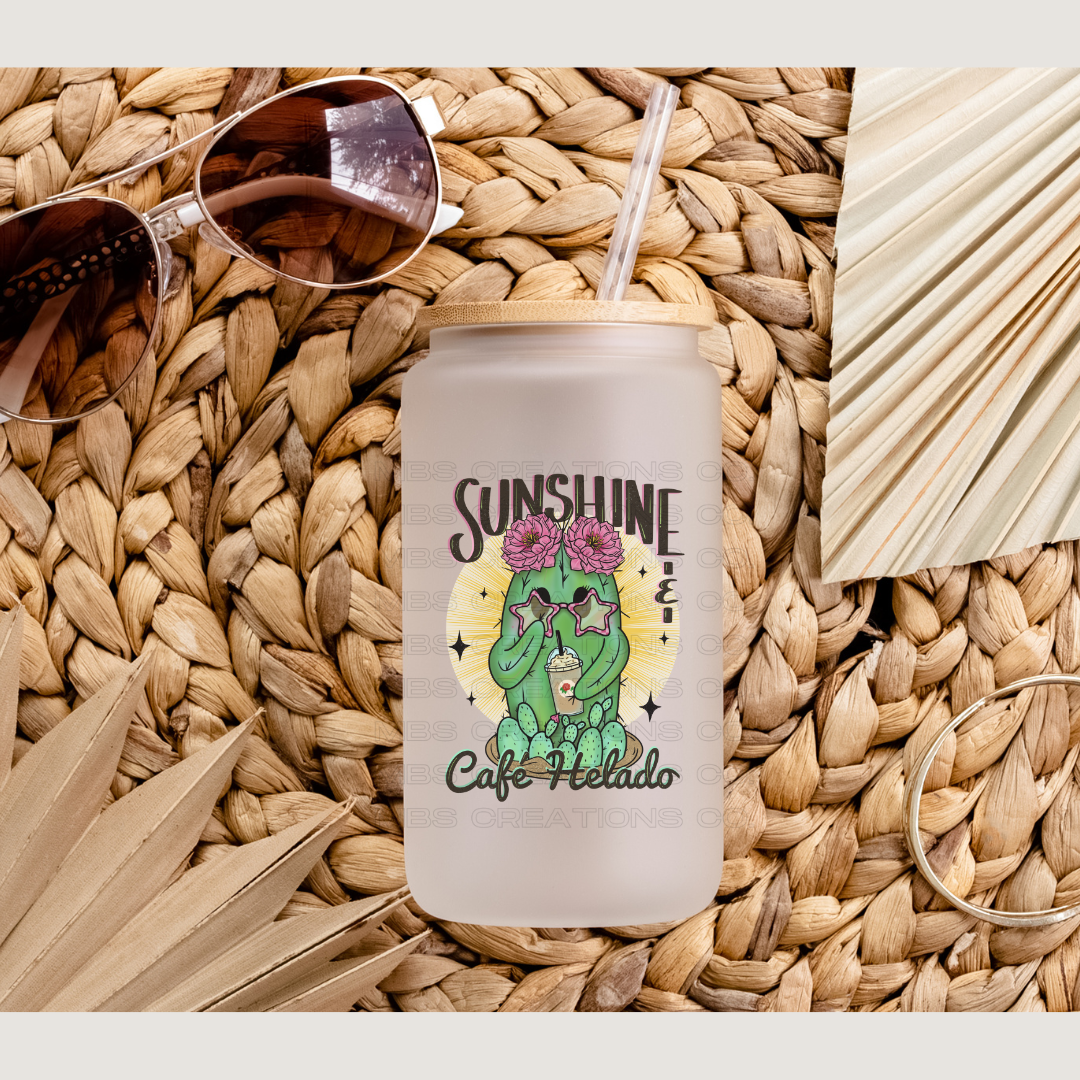 Add a touch of sunshine to your day with Sunshine Cafe Helado Cup. Serve your favorite drink in this stunning glass frosted cup. A cold drink will sure brighten up your mood!